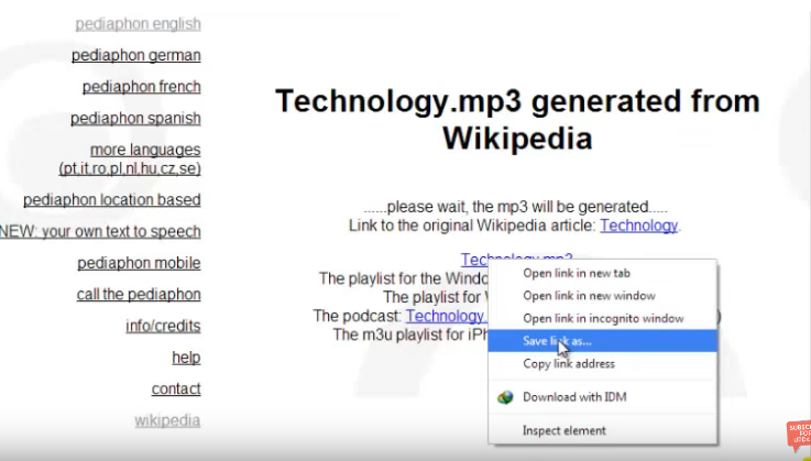 Wait for about two minutes. The title of the article will appear with the extension “.mp3”. Right-click on that and choose “Save link as..”