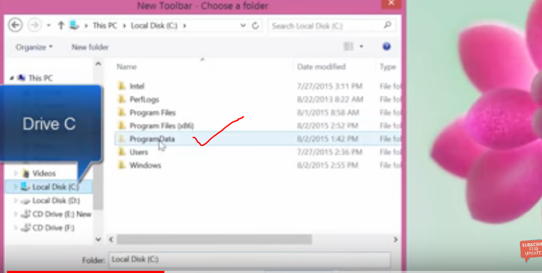 Click on the local drive (c) at the left side corner of the new toolbar interface for its features to open. Tap on the program data in drive c followed by Microsoft folder. Proceeding, scroll down and look for “Windows” in Microsoft folder. Tap on windows to open subsidiary folders in the windows folder. Open “Start Menu” folder on Windows folder to display a single folder called “programs” for an interface containing “Select Folder” button to display. Hit on select folder button at the bottom to go to the desktop of the computer. Afterwards, you will see the “Start menu” icon at the right corner of the taskbar.