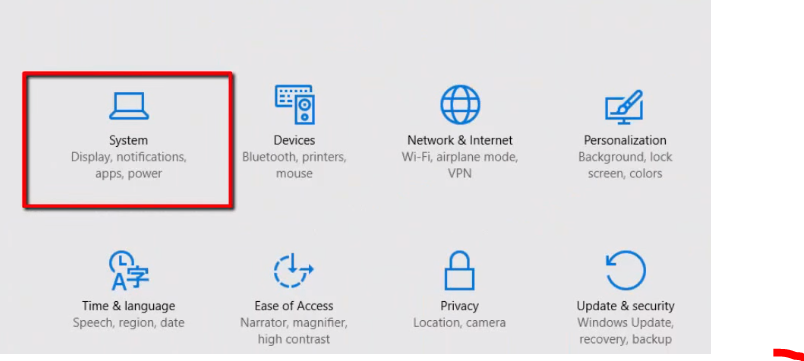After identifying settings in start menu, click on settings to pop up items or features that are embedded over there. Tap on “system” in settings which is used to change font size on application such as file explorer, web browsers etc