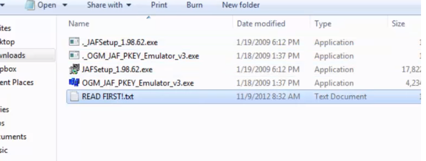 If you are using Windows XP, just double click on the OGM_JAF_PKEY_Emulator_v3.exe  to run it and jump to STEP 3.